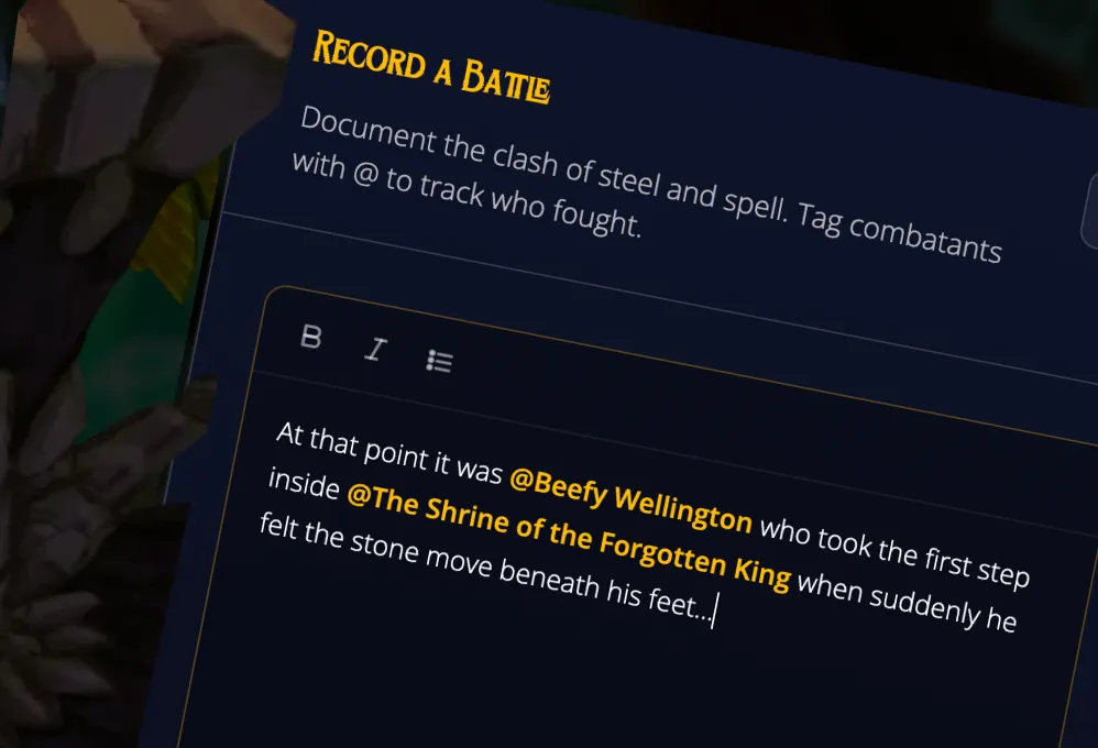 Tag characters and locations as you play. Search across your entire campaign to reconnect the dots in seconds.